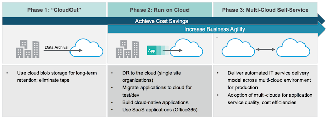 One could argue these as the prescriptive steps for all organizations but I think its a fair argument that a lot of organizations start out tiering off archive data, then move towards test/dev on IaaS and SaaS based application delivery models where it makes sense, and finally (..eventually? ...hopefully?) arrive at an automated IT service delivery model based on a cloud first strategy and heavily backed by tools like Automation, SDx, CM, etc. as well as the appropriate org structure and processes to support such a consumption model.
