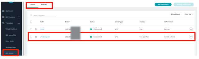 Native NAS backups are now supported. As of 3.0 NAS was officially supported via a proxy VM that you mounted the NAS on to in order to back it up. Rubrik has done away with that model and will now mount NAS shares directly to the cluster for backing up. Both NFS and SMB are supported and you simply add the share by IP/FQDN, supply credentials, and configure the fileset definition as you would in a Windows/Linux environment.